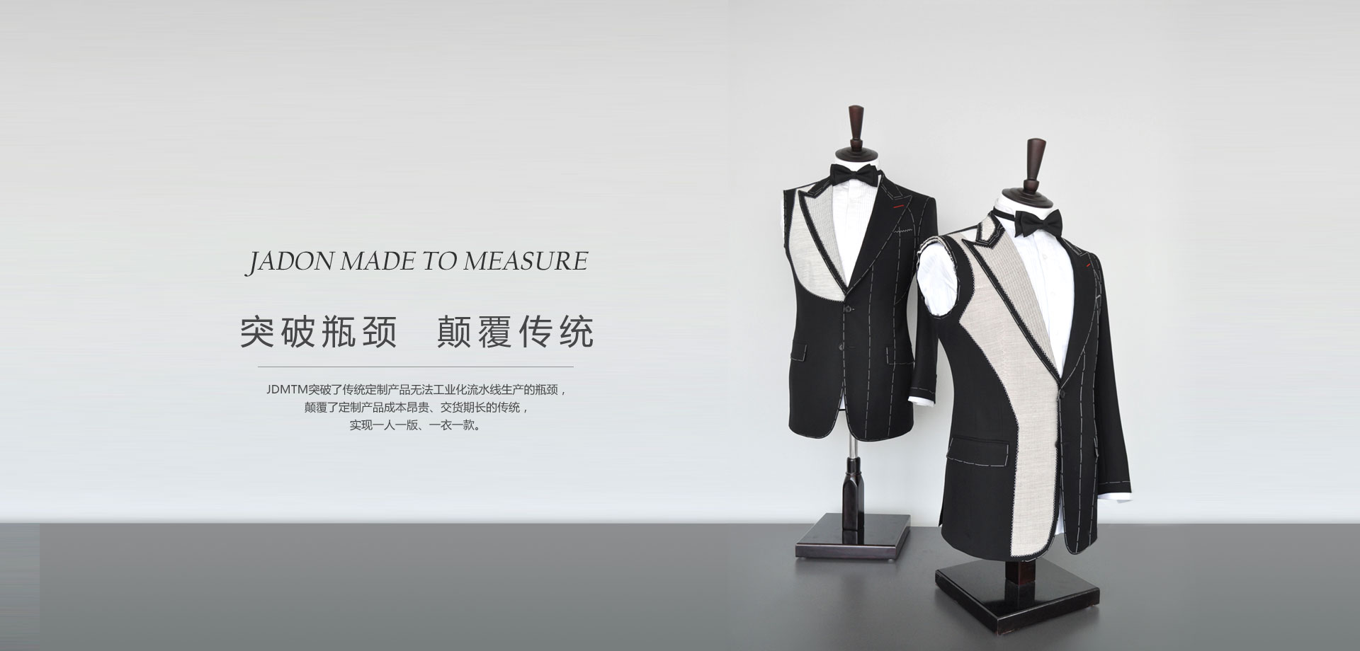 JADON品牌定位于高端定制商務男裝,為商務精英男士展現更自信、成功的形象提供個性定制的服飾產品和優質服務。